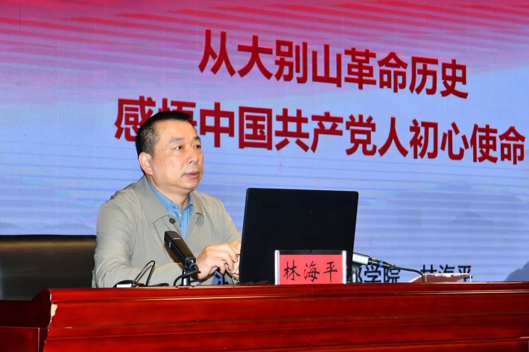 河南省省委党校教授周远方、河南大别山干部学院林海平副教授分别讲授《重读历史文献 践行“三个务必”》《从大别山革命历史感悟共产党人的初心使命》课程。