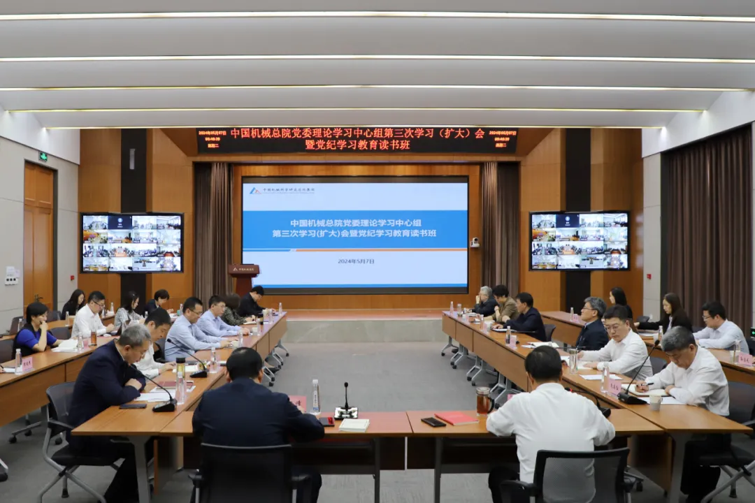 5月7日,中国机械总院召开党委理论学习中心组2024年第三次学习(扩大)会暨党纪学习教育读书班,深入学习领会习近平总书记关于全面从严治党、推进自我革命的重要论述,原原本本学习新修订的《中国共产党纪律处分条例》,推动集团党委党纪学习教育有力有序有效开展。集团党委书记、董事长王德成主持会议并讲话,带头交流学习心得体会。